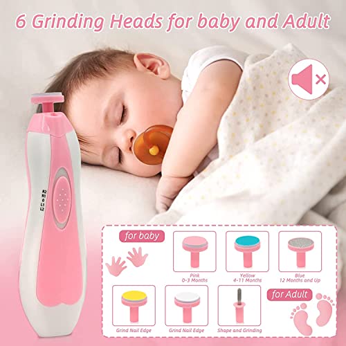 【Silent Electronic Nail Filer Set】ABS silent electronic nail filer has strong pressure resistance and smooth corners—360 ° rotation to polish nails. The electronic nail filer for babies adopts an ergonomic design, which can be easily held and not easy to fall. 35dB Quiet, smooth operation, two-way rotation, two-speed speed regulation, fine grinding of baby’s nails, straightforward process. The electronic nail filer comes with five kinds of replacement grinding heads.