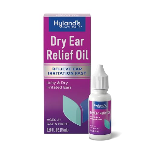 Hyland’s Naturals Dry Ear Relief Oil, Relieve Ear Irritation Fast, for Itchy & Dry Irritated Ears, Ages 2+, Day & Night Drops, 0.5 Ounce