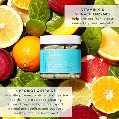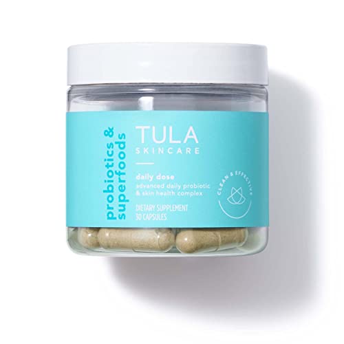 TULA Skincare Daily Dose Advanced Daily Probiotic & Skin Health Complex – Women s Daily Probiotic, Digestive & Skin Health Supplement with Updated Formula, 30 Vegetarian Capsules