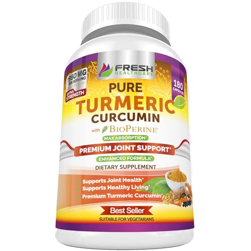 Turmeric Curcumin with BioPerine 1950mg – Natural Joint & Healthy Inflammatory Support with 95% Curcuminoids Complex – Black Pepper for Max Absorption – Non GMO, Gluten Free – 180 Capsules