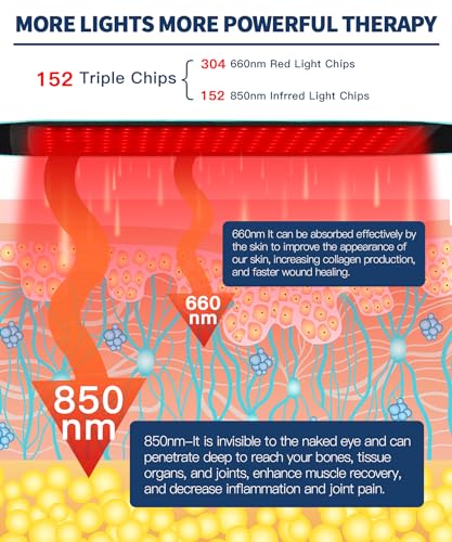 Back Massager Belt with Red Light Therapy—The lower back massager is equipped with 152 infrared light chips and 304 red light chips. Our red light therapy massage belt can enhance blood circulation and muscle relaxation, penetrate deeper into your bones, organs, and joints to reduce pain, decrease inflammation, and promote wound healing, and tissue repair.