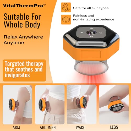 Smart Multi-Therapy Solution: VitalTherm PRO smart cupping therapy device offers a holistic approach by seamlessly combining heat therapy, massage, and dynamic suction in a single, user-friendly device, all within the comfort of your home