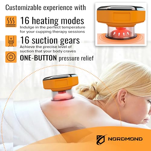 Professional Electric Cupping Therapy Set with Remote – Smart Cupping Massager & Advanced Heat Therapy Cups for Knots, Pain Relief – Cellulite Remover – 16 Gears for Customized Comfort (Orange)
