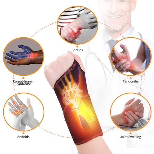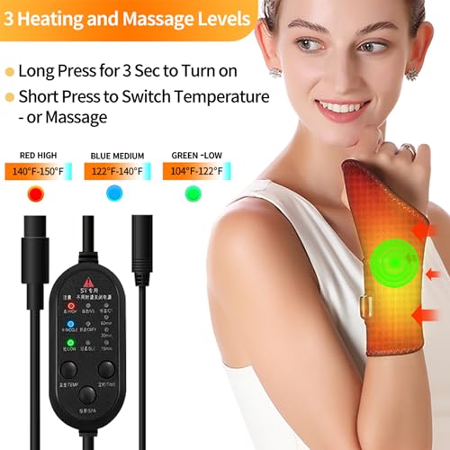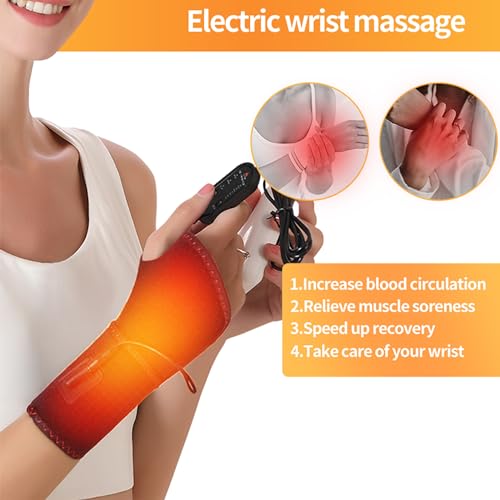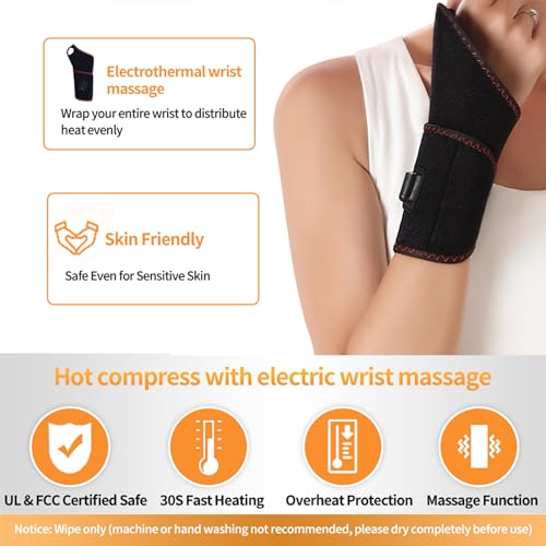 Wrist Heating Pad, Heated Wrist Brace with Massager, with 3 Vibration and Heat Settings, Heated Hand Wrap for Arthritis, Carpal Tunnel Relief